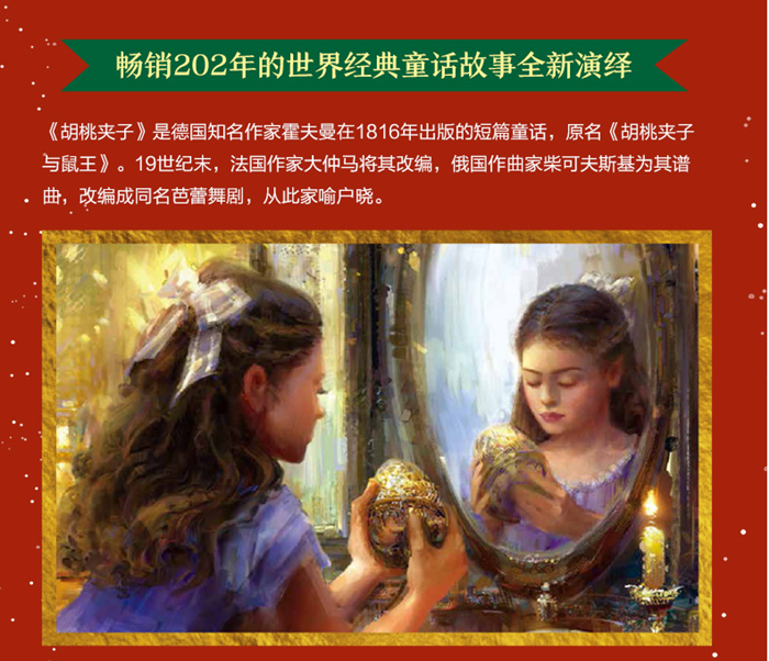 《胡桃夹子》是德国知名作家霍夫曼在1816年出版的短篇童话,原本叫做《胡桃夹子与鼠王》,至今畅销202年。本书改编自风靡全球的经典童话《胡桃夹子》,以舞者的视角全新演绎,将优美的舞姿与幻想世界完美融合,故事结构紧凑,艺术性极强。