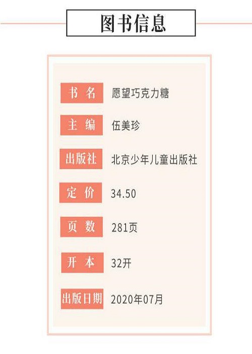 《愿望巧克力糖》这本书。它仿佛具有魔力,深深地吸引着小朋友们。这本书都是以日记的格式来写的,同时又分,两个不同的人和不同的时间里的小故事。首先是华爱德,他是上学时那丰富多彩的校园生活。接着是项心怡 ,她是有甜有苦的暑假生活。 说实话,比起华汪德的校园生活,许多人更向往项心怡的暑假生活。暑假生活那过得可不一般,先是经历过与好朋友分开的苦涩味,再是经历过内蒙古玩结交新朋友的甜蜜味,这就像是巧克力的味道,又苦又甜。