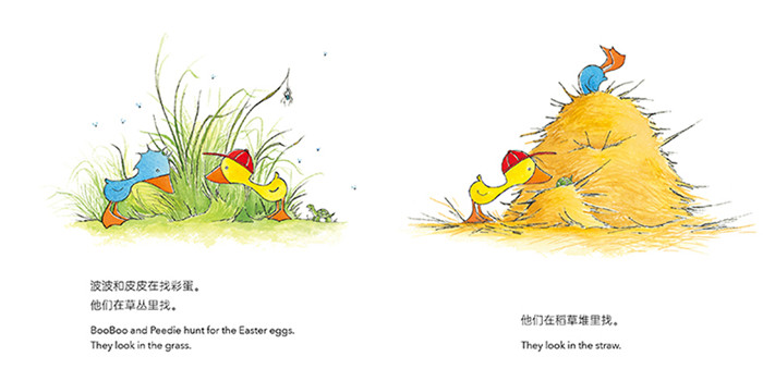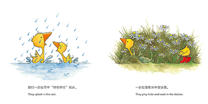 “小鹅奇奇”(全13册)是一套适合0-3岁宝宝的中英双语语言启蒙绘本,包含12册双语故事绘本和1册互动纸板书。它讲述了十只小鹅分享雨靴、调皮不想睡觉、把玩具弄丢等一系列发生在农场的小故事。丰富的生活常用词汇,重复和韵律的句子贴近孩子的表达,搭配识读单词表,在亲子共读中刺激着视觉和听觉,让孩子在好玩的故事中慢慢建立孩子对新语言的熟悉感,激发学习英语的乐趣。 《艾玛和艾斯》:弟弟艾斯总是跟在姐姐艾玛身后。一天,艾玛大喊:“别一直跟着我!”于是,艾斯自己出发了,艾玛会怎么做呢?