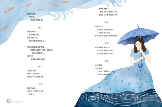《繁星》《春水》是冰心得意的两部诗歌集,中国现代新诗的经典范本。受泰戈尔《飞鸟集》的启发,冰心将自己一些“零碎的思想”整理起来,结集成书。她用女性纤柔、细腻的文笔,颂咏大自然、母爱和童心;也微带忧愁、温婉地述说了那一代青年知识分子的烦忧,及对生命意义的探寻和追求。这些诗清新雅丽,意蕴隽永,多年来深受喜爱,经久不衰。