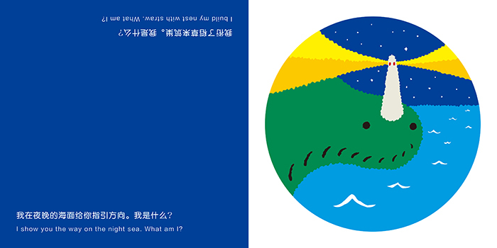 《我是什么?》本书通过巧妙的艺术表现手法和鲜艳的色彩搭配,让孩子认识到从自然世界到人文社会所存在的各种各样的事物。把书颠倒过来,美丽的玉兰变成了巍峨的雪峰,袅袅炊烟变成了通向家的温馨小路……每幅画颠倒过来都是一个新的世界,让小朋友们“正着看、颠倒看”,就是要告诉小朋友“观看东西的方法不止一种”。