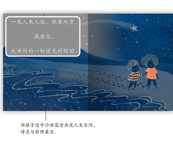 从晚霞染红的大地到无尽蔚蓝的大海,从落叶纷飞的旷野到星汉灿烂的银河 两个小主人公开始了一场天马行空的漫游:他们用星星搭成梯子, 坐在月亮上眺望远方;他们紧紧抓着一株飘飞的蒲公英, 随着它去远方旅行……