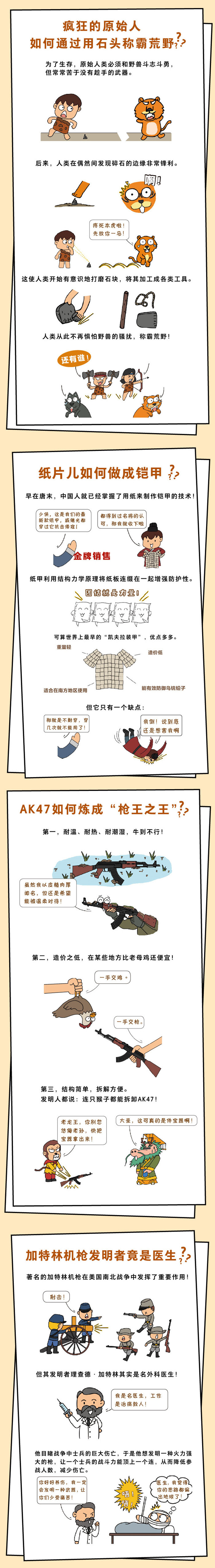 ☆ 黄同学漫画兵器史 ☆ 一本严谨+爆笑的人类兵器大百科 认准黄同学,弄懂兵器的前世今生! 黄同学将通过新鲜有趣的漫画形式带领读者走进刀枪铮鸣、炮火不断的兵器世界。《黄同学漫画兵器史:枪械篇》作为系列作品的第二作,紧接第一部内容对进入热兵器时代以来的枪械进行了分门别类的介绍。在本书中,你将见识到对这些兵器的故事:半自动步枪的代表Kar98k、M1加兰德,狙击步枪的代表巴雷特M82、莫辛-纳甘M1891/30和98k狙击步枪,左轮手枪的代表柯尔特、史密斯·韦森,套筒手枪的代表勃朗宁M系列,机关枪的代表加特林机枪、马克沁重机枪、日本歪把子机枪、捷克造机枪、MG34/42通用机枪,冲锋枪的代表MP18、MP38/40、波波沙冲锋枪、反恐利器MP5,突击步枪的代表STG44、枪王AK47、M16,榴弹发射器,霰弹枪以及现代甲胄防弹衣和头盔。通过这些兵器故事,你将看到兵器被发明、使用和更新的过程及兵器对战争和历史的巨大影响。