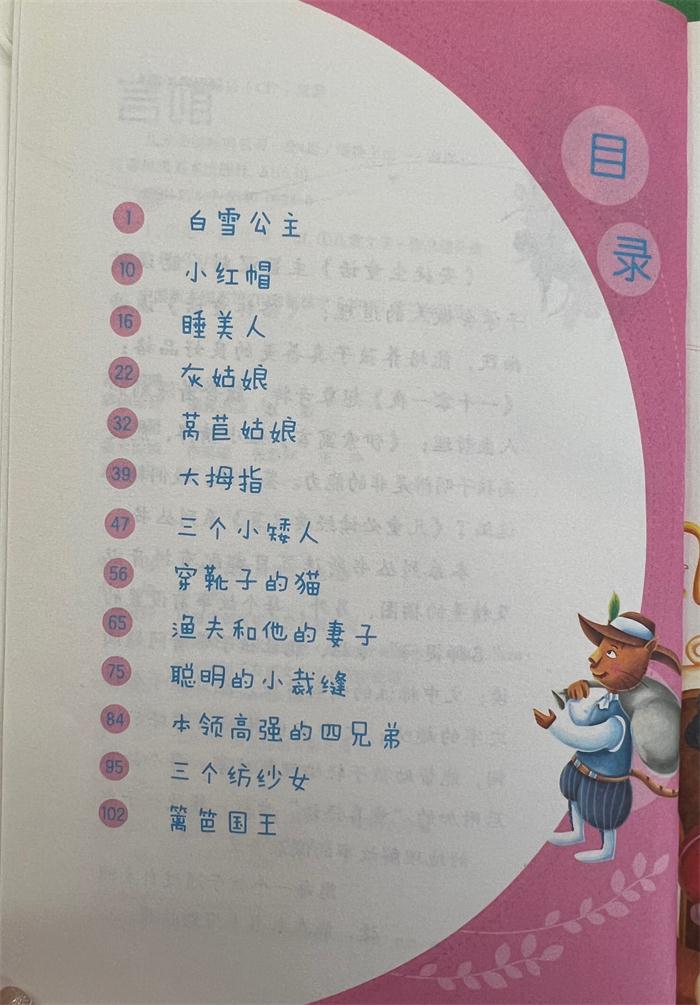 本套书由《安徒生童话》、《格林童话》、《一千零一夜》、《伊索寓言》四册组成。《安徒生童话》包括《海的女儿》、《小锡兵》、《冰雪女王》、《拇指姑娘》、《卖火柴的小女孩》、《丑小鸭》和《红鞋》等。《格林童话》包括《灰姑娘》、《白雪公主》、《小红帽》、《睡美人》、《青蛙王子》、《勇敢的小裁缝》、《穿靴子的猫》等。《一千零一夜》包括《渔夫和魔鬼》、《阿拉丁和神灯》、《阿里巴巴和四十大盗》、《辛巴达航海旅行记》等。《伊索寓言》包括《农夫和蛇》、《狐狸和葡萄》、《狼和小羊》、《龟兔赛跑》、《乌鸦喝水》、《蚊子和狮子》、《北风与太阳》等。