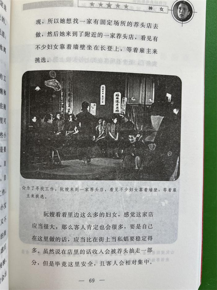 《神女》描述了旧中国的上海南京路上,一个私娼名叫阮嫂,为了躲避警察的追捕,误进了流氓章老大的家门。从此,章老大缠上了阮嫂,抢夺阮嫂的卖身钱,再拿去赌场挥霍。阮嫂的孩子小宝长大了,来到私立扶本学校上学,后被学校开除退学,校长也由此而辞职。为了能让小宝上学,阮嫂决心搬离这个地方,却突然发现自己藏在墙洞里的钱却不翼而飞……