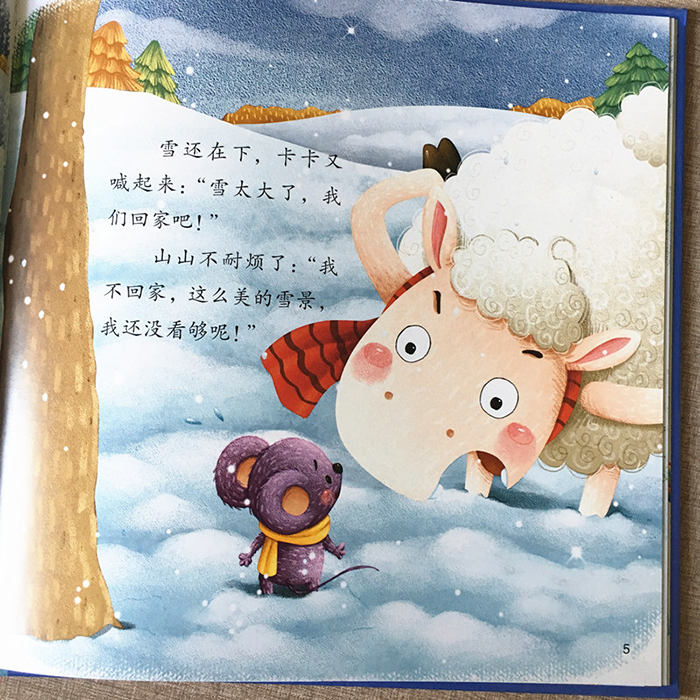 下雪了,小山羊山山和小老鼠卡卡一起去看雪景的时候,无意中把长得很小的卡卡弄丢了。没多久,山山冷了,他不想在外面待太久,顾不上寻找卡卡去哪儿了,就急忙往家里跑,在路过獾子医生家的时候,也没有去帮着清理医生家门前的雪。山山回到家,暖暖和和的睡了一觉后,才想起卡卡仍然没有回家。山山去找卡卡,可是,茫茫的原野里哪里还有卡卡的身影?后来,山山知道了,多亏獾子医生,才把被山山甩到树杈上的卡卡救了下来。看到躺在病床上的卡卡,山山哭了。在每本书的后面,都有相关的教育提示,给家长最具建设性和可操作极强的指导意见及切实可行的方法。