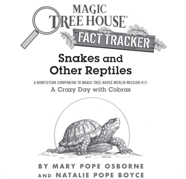 When Jack and Annie got back from their adventure in Magic Tree House Merlin Mission #17: A Crazy Day with Cobras, they had lots of questions. Can snakes really be charmed? What reptile has the deadliest venom? What do Komodo dragons eat? How do you tell alligators and crocodiles apart? Find out the answers to these questions and more as Jack and Annie track the facts.