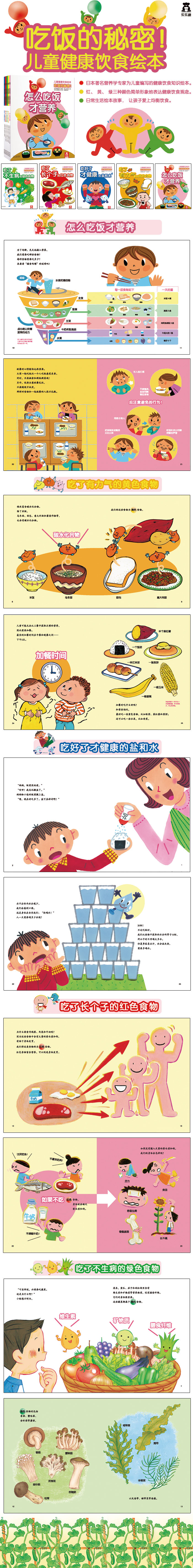 日本著名营养学专家为儿童编写的健康饮食知识绘本。红、黄、绿三种颜色简单形象地表达健康饮食观念。日常生活绘本故事,让孩子爱上均衡饮食。