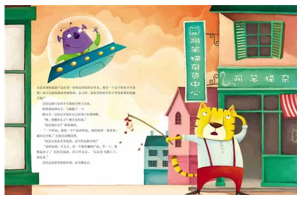 “啊哈,啊哈,”外星人很夸张地张开手臂,做出要拥抱阿笨猫的样子, “请接受来自遥远的星球——阿尔法星球的祝贺!祝贺阿笨猫杂货中心开张!”