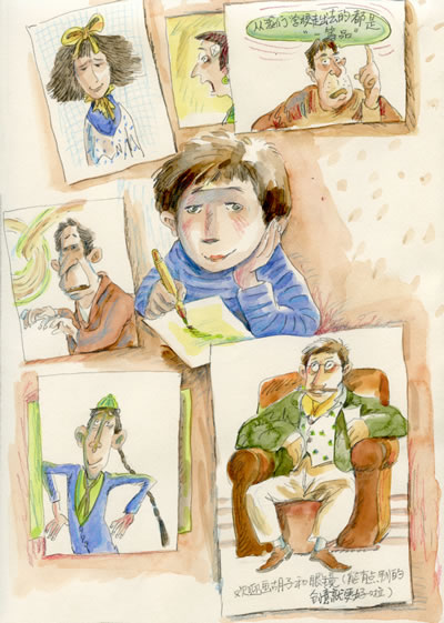 我一路兴奋地画下去,心想:好多漫画家就是这么开始练习的吧!可画到一个校长的照片的时候,我的手不由自主缩了回来。