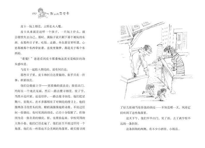 幽默,但不是轻浮的空洞的搞笑,这是一种达抵智慧境界的幽默。依然有作家原先作品所有的感动——皮卡的成长过程同时也是一个让人感动的过程。令人叹息的感动,令人沉思的悲悯。它能令每个人看到自己的童年,体会到人生之初的单纯是如何一点一点被描绘得五彩斑斓的过程。不仅孩子会从中受到成长的教育,父母也会在书中重温那段雕塑孩子心灵和性情的时光。