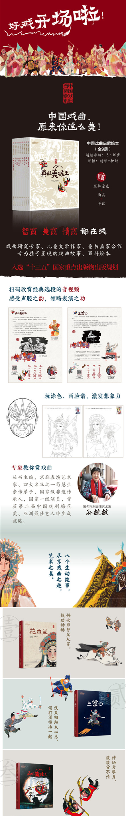 本书从戏曲发展史,戏曲行当、服饰、道具、名家等戏曲知识为出发点,告诉孩子什么是中国戏曲。书中不仅用精美的手绘图展现戏曲的外在美,同时配以二维码,嵌入经典唱段的音频,让孩子们能身临其境地感受戏曲的内在美,再辅以画脸谱、设计服饰等延伸活动,全面激发孩子对戏曲的兴趣,从而了解戏曲,亲近戏曲,更好地领略传统艺术的瑰丽与神秘。