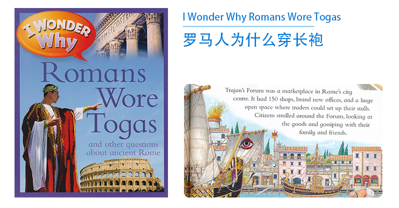 Nothing brings ancient history to life like thinking about what ancient people did that we can relate to today. I Wonder Why Romans Wore Togas takes an accessible approach to the subject with child-friendly language, entertaining illustrations, and a series of questions that bring the people of Ancient Rome to life. Covering everything from clothing, food, and family life to art, architecture, engineering, and colonization, the short Q & A format delivers just the right information and the most interesting facts, encouraging lively discussion, and opening the door for deeper exploration of this important subject.