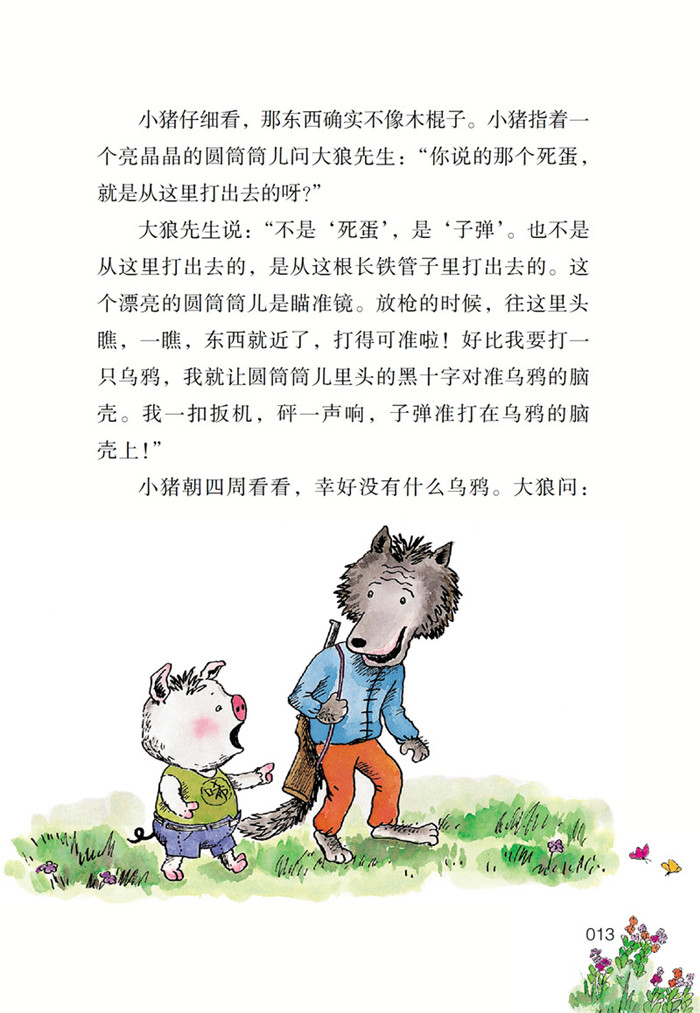 小猪说:“我也不知道什么地方卖飞机票,等找到地方咱们再给吧……您那‘钱’花起来多不方便哪,还得上秤去称。这儿正好有个银行,您进去换换!”