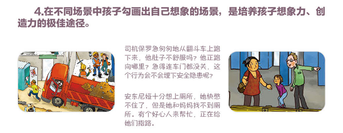 没有文字,不会用文字限定内容、固化思路,激发孩子的想象力。
