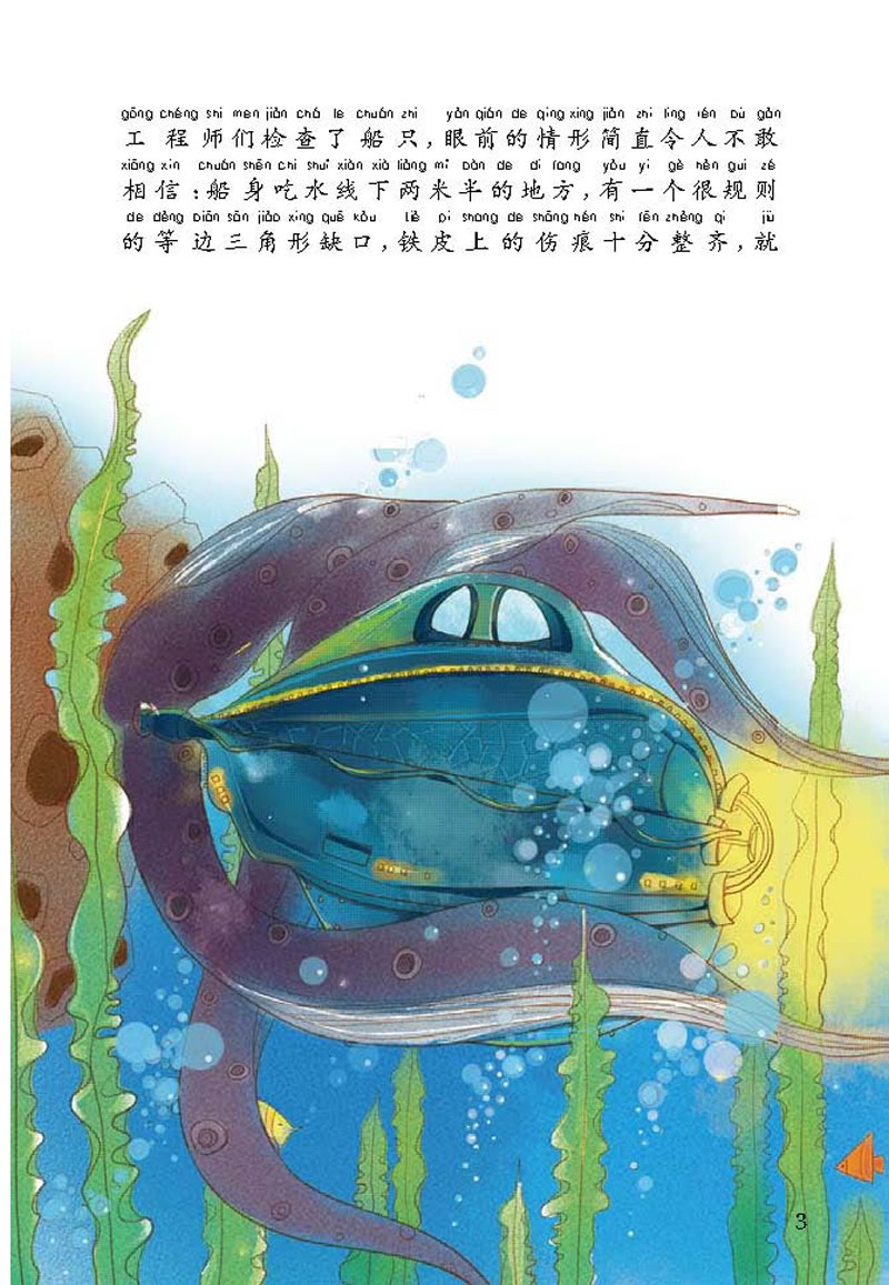 人们一定还记得1866年发生在海上的一件怪事:一个庞然大物时而浮出海面,时而潜入海里,它形?状?像?纺锤,行?动迅速,体积比鲸鱼还大很多,有时还会发出磷光。