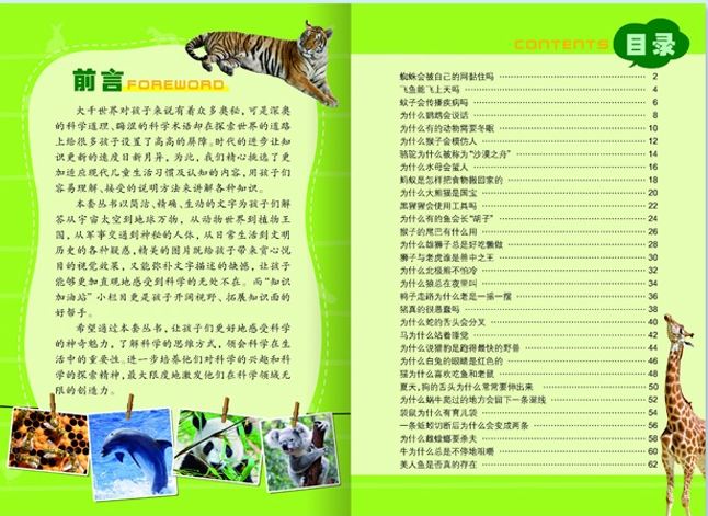 所以,我们不*新知识就不能进步。此外,孩子们提出的这些问题,看似简单、幼稚,但却涉及自然界中各个门类的知识,蕴含着很多科学道理。为了满足孩子们的求知欲和好奇心,为了向儿童进行自然科学的普及,我们特组织一批有经验的科普作家,精心*新编*了这套《十万个为什么》(儿童学习版)丛书。丛书包括《动物王国》、《军事交通》、《科学技术》、《生活百科》《十万个为什么:历史文明》《植物王国》、《人体奥秘》《天文地理》。书中作者用简明的文字、丰富多彩的图片,把一些深奥、抽象的科学知识描绘得通俗易懂、充满情趣。