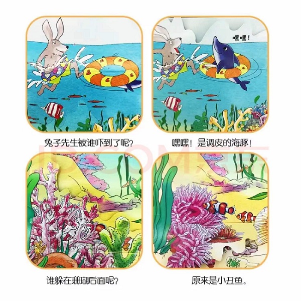宝宝的小手翻一翻,就可以发现不一样的画面,惊喜不断,给宝宝以视觉的震撼。