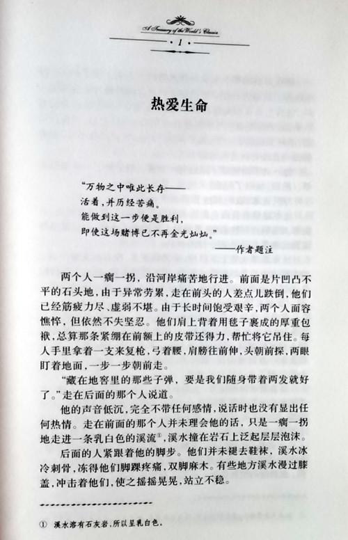 《热爱生命》是19世纪末20世纪初美国小说家杰克·伦敦最著名的短篇小说,这部小说以雄健、粗犷的笔触,记述了一个悲壮的故事,生动地展示了人性的伟大和坚强。展现出人性深处闪光的东西,生动逼真地描写出了生命的坚韧与顽强,奏响了一曲生命的赞歌,有着撼人心魄的力量。