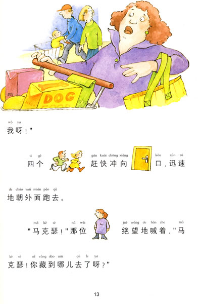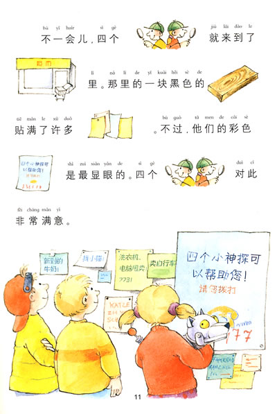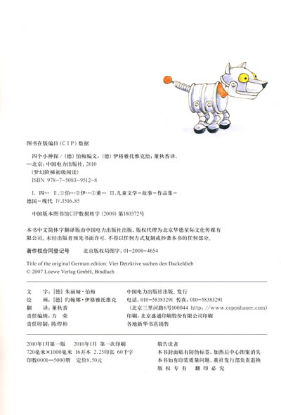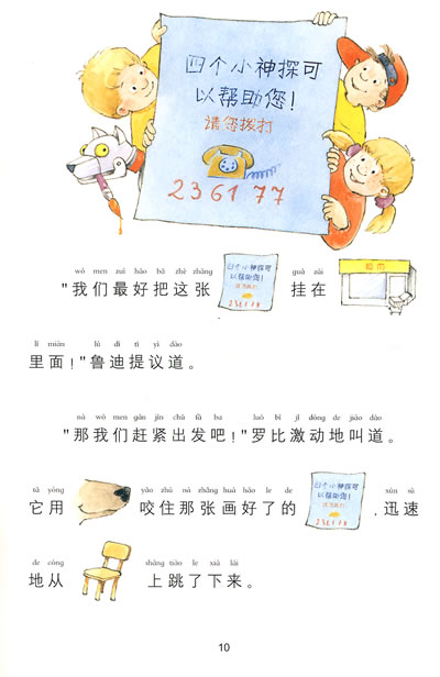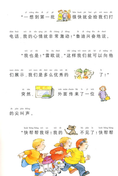 猎狗马克瑟被”绑架”了!邻居迈尔太太可伤心了。不过,幸好四个聪明可爱的小神探接下了这件”案子”。那个可恶的偷狗贼究竟往哪儿跑了呢?四个小神探在超市前面发现了可疑的足迹…… 四个聪明的小神探能够顺利地找到小猎狗吗?小猎狗真的是被可恶的小偷绑架了吗?书中语言简单易懂,且以图代替文字的形式新颖好玩儿;故事情节跌宕起伏.精彩纷呈:生动形象地刻画了四个聪明可爱的小神探——三个小朋友和一只会说话的机器狗!