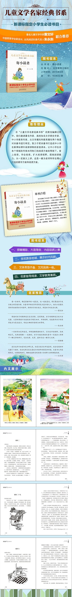 本书选编了冰心的《寄小读者》《再寄小读者》和《三寄小读者》。《寄小读者》是冰心在1923年—1926年间写给小读者的通讯,主要描述了海外的风光和奇闻异事,同时也抒发了她对祖国、对故乡的热爱和思念之情。1958年开始,冰心开始写《再寄小读者》,介绍了祖国发生的翻天覆地的变化,新中国劳动者和平幸福的生活。《三寄小读者》写于1978年,作者与少年儿童谈理想、谈生活、谈学习,回忆过去,讴歌新时代。这些文章文笔优美,言辞简练,影响了一代人。