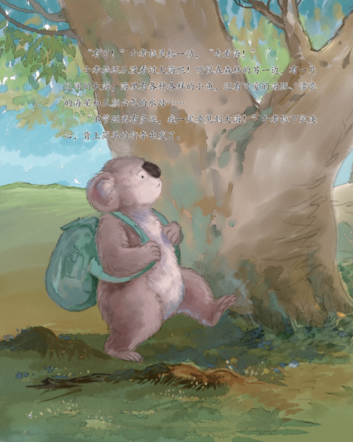 有一天,小考拉突发奇想:“我要去看海!”