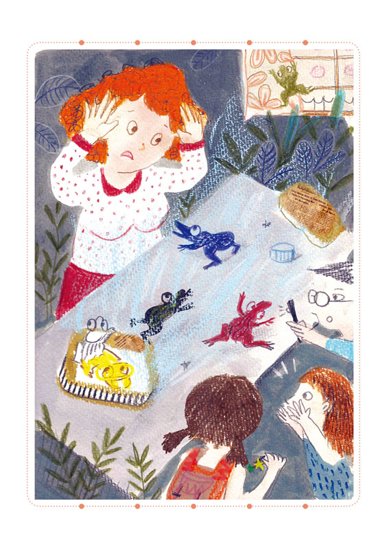 朵朵和芳芳坐到座位上,看见全班同学一个个都兴高采烈的样子。坐在朵朵旁边的雷雷还一边舔嘴唇一边说:“刘老师,快点啊,快点啊,我喉咙里都伸出十二只手来问我要巧克力了!”