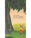 I am a bunny. My name is Nicholas. I live in a hollow tree. In the spring, Nicholas likes to sniff the flowers, and in the summer, watch the frogs in the pond. In the fall, he watches the animals getting ready for winter, and in winter, watches the snow falling from the sky. This beautifully illustrated, gentle story is one of Golden's most beloved titles.