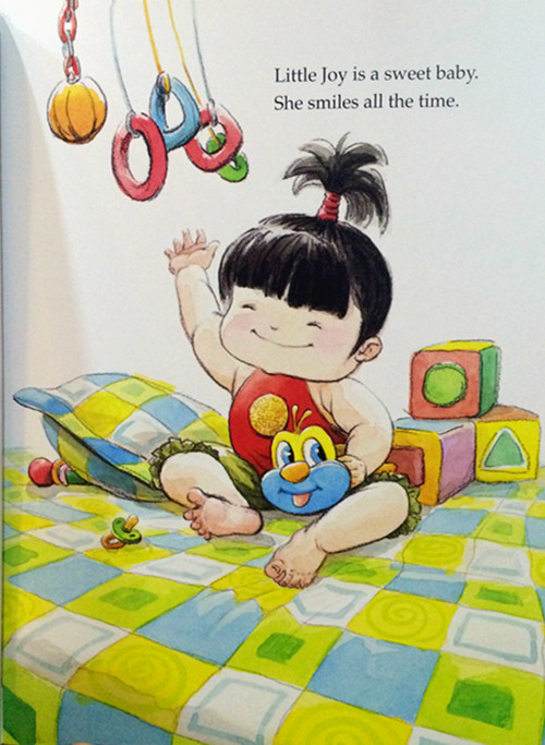 Little Joy is a happy baby. She smiles a lot. But her Mommy notices that, unlike other babies her age, Little Joy has not yet learned to laugh out loud. This book is for very young children. The story uses limited words, simple sentence structure and repeated sentences to encourage language acquisition. Its charming illustrations of a Caucasian family interacting with their adopted Chinese daughter impart one message: A heart with love has room enough for everyone.