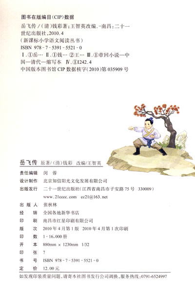 岳飞是南宋人,中国古代杰出的民族英雄。他是一位有胆有识、智勇双全的军事统帅。他武艺高超、用兵如神,训练了一支纪律严明、作战勇敢的抗金武装——岳家军。他为了维护国家安全,抵御外敌,全力抗金,但是最终却被昏庸的宋高宗和奸臣秦桧害死。 《岳飞传》在原著的基础上,以通俗明白的语言、艺术的表现手法详细讲述了岳飞一生的传奇故事,岳飞精忠报国的美德和抗击侵略的勇气和决心将流芳百世。