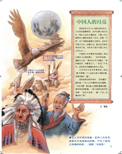 古人对月亮的想象:世界上许多民族都对月亮表面的阴影,产生了独特又有趣的联想。(插图/刘俊男)