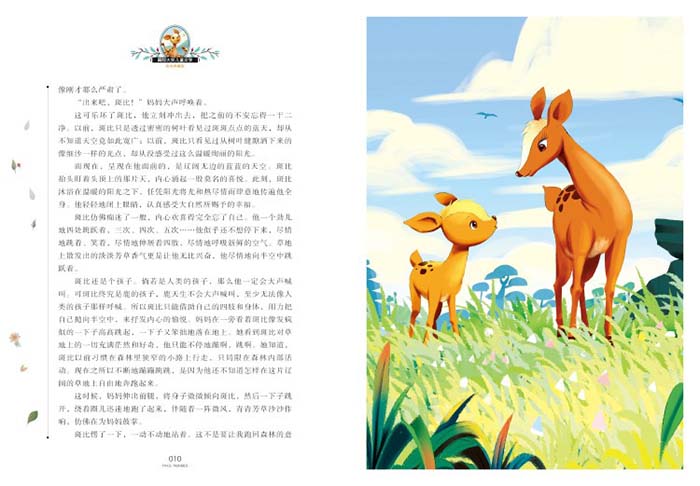 《小鹿斑比》是一部表达爱与温馨的作品。故事描述了斑比与森林伙伴们一起历经季节变换,在神奇的大自然里成长的过程。当人类闯入森林,屠杀它们的亲人、摧毁它们的家园时,只有爱是抚平伤痕的唯一力量。