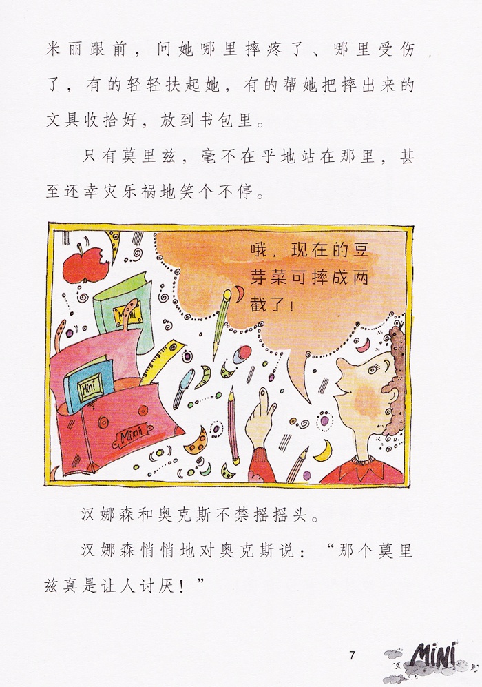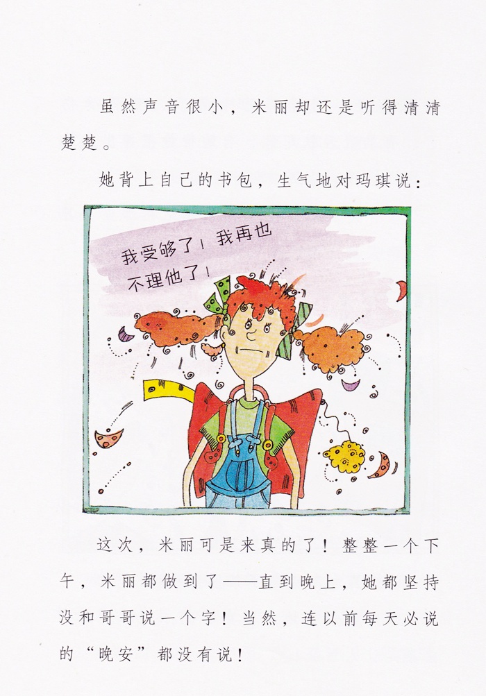 米丽的哥哥莫里兹被所有人当成偷钱包的嫌疑犯,而他自己却只会大喊:“不,这不是我干的!”米丽仔细观察之下,发现莫里兹这次既没歪脑袋,又没有眨眼晴,更没有把鼻子皱成可笑的怪模样,米丽确信莫里兹这次真的是无辜的,怎么帮莫里兹证明他的清白呢?