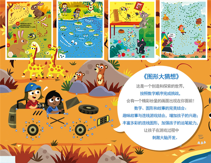 ★数字、图形和故事的完美结合:趣味故事与连线游戏结合,增加孩子的兴趣;丰富多彩的连线图形,加强孩子的运笔能力,在游戏过程中刺激大脑开发