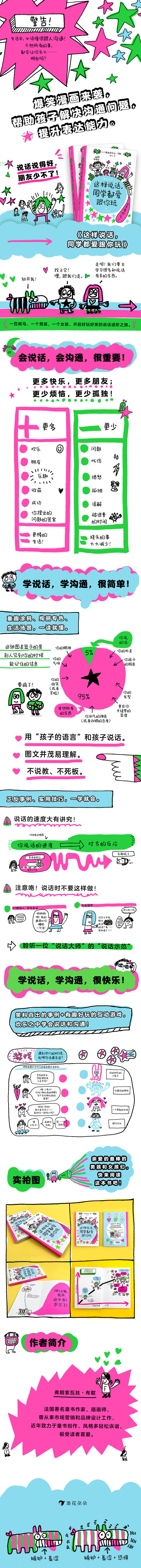 说话说得好,朋友少不了! 法国畅销童书作者弗朗索瓦丝·布歇新作,一本教孩子如何说话的儿童漫画。一个男孩、一个女孩,加上一匹不情愿的斑马,开启爆笑的说话进阶之旅。生活情境、童趣涂鸦、实用技巧,用孩子的语言妙解高深的“沟通学问”,让孩子轻轻松松学会如何与人沟通,提高自己的表达能力和社交能力。