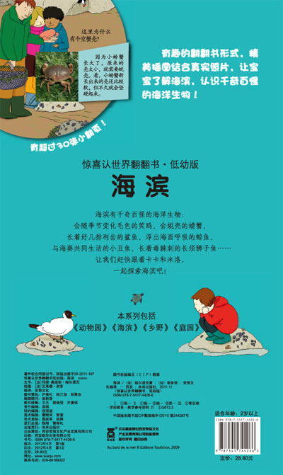 4.有趣的翻翻书形式+精美插图+真实照片,让孩子领略真实自然风光,认识海滨、乡野等不同地方的有趣动物。