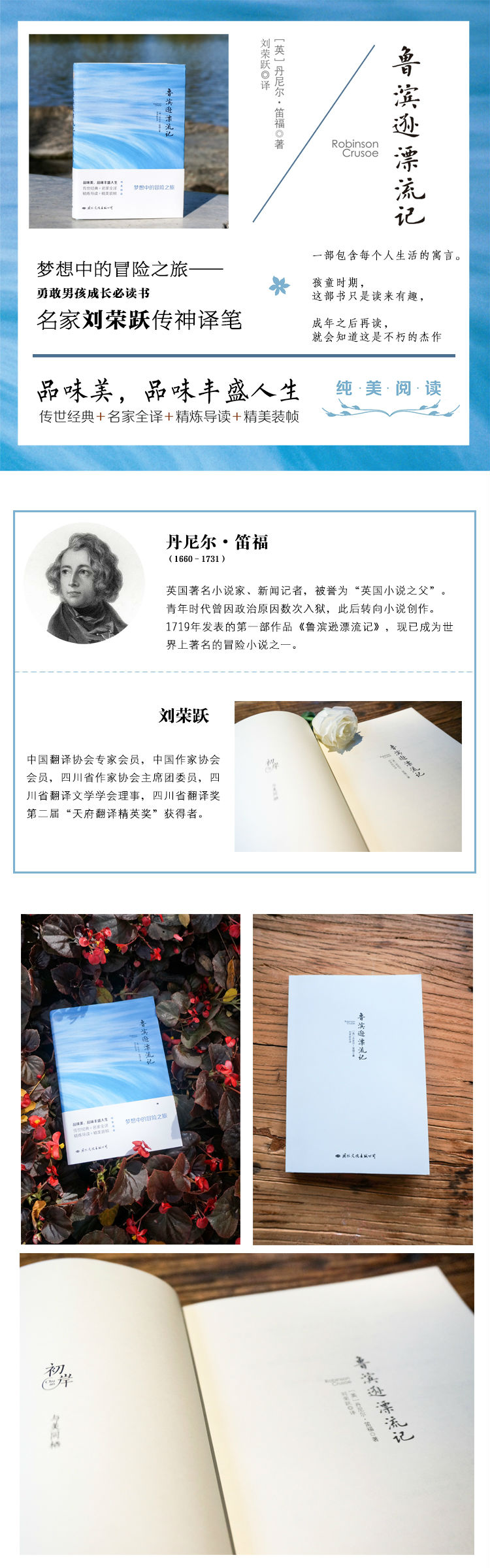 在鲁滨逊这个人物身上,集中体现了一个探险家所必备的素质与品格:勇敢、沉着、敏锐、不屈不挠……这些特质既是那个时代所呼唤的,同时也具有*性,体现了人类对自然不断征服而又和谐共处的复杂态度,直到如今仍然深具感染力。在鲁滨逊冒险故事的背后,是人类共通的对于另一种生活的梦想和对于孤独的恐惧。读者绝少有机会在蛮荒之地被“囚禁”多年,但我们每个人都曾品尝过孤独的滋味;生死的考验虽然罕有发生,但在日常生活中我们也常能体会绝望的情绪。鲁滨逊的故事能够引发这种**的情感共鸣,引导我们坦然面对未知的险境,坚定信念,毅然前行。