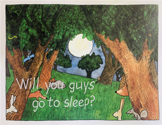 当夜幕降临森林时,所有的动物都安顿下来,美美地睡上一觉——除了一只烦躁不安的熊、一只摇摆的松鼠和一只焦躁不安的兔子。