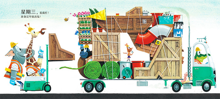 富有节奏感的语言令人愉悦,插图里的细节同样藏着惊喜。——《科克斯书评》(Kirkus Review评《忙碌的工人,忙碌的一周》)