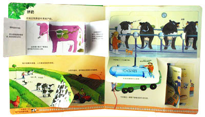 本系列沿用“看里面”的经典“翻翻”、“拉拉”、“信封”多种阅读形式。让宝宝们可以打开汽车工厂的大门,看看他们喜欢的小车是怎么生产出来的,打开车厢盖,可以了解汽车的工作原理;“农场”也将“打开大门”欢迎孩子们的到来,牛先生会告诉孩子每天喝的牛奶是从哪里来的。孩子们还会通过“翻翻”的互动阅读形式发现原来自己的毛衣曾经是绵羊小姐的外套。农场的主人还会为孩子们介绍米饭和馒头是如何从一棵像草一样的植物变成他们餐桌上的食物……还有关于“飞机场”、“科学”的趣味知识都在等着孩子“看里面”自己动手去发现!