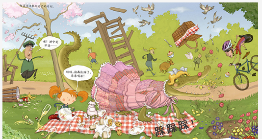 本书为故事绘本,阿德莱德是一个什么都想做的小女孩。有一天她在做蛋糕的时候从一个蛋里打出来一只小鳄鱼,阿德莱德太高兴了。但问题来了,家里人不让她养宠物,她只能把鳄鱼打扮成洋娃娃的样子。开始的时候很顺利,但随着鳄鱼一天天长大,它不但体形变大了,也经常会闯祸,于是镇上的人们要求阿德莱德把鳄鱼处理掉。阿德莱德不想失去鳄鱼朋友,最后她想到了一个办法,让鳄鱼去垃圾处理场工作,鳄鱼的工作得到了大家的认可,它又可以留在阿德莱德的身边啦!