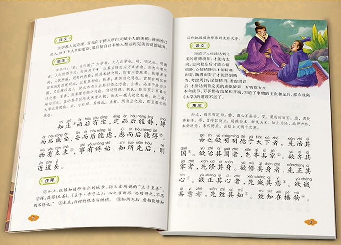 《大学》为孔子弟子曾参(前505—前434)作。原本是《礼记》中一篇,在南宋前从未单独刊印。自唐代韩愈、李翱维护道统而推崇《大学》(与《中庸》),至北宋二程百般褒奖宣扬,甚至称,《大学》,孔氏之遗书而初学入德之门也”,再到南宋朱熹继承二程思想,便把《大学》从《礼记》中抽出来。 《中庸》一般认为它出于孔子的孙子子思(前483-前402)之手。原来也是《礼记》中一篇,在南宋前从未单独刊印。《史记·孔子世家》称“子思作《中庸》”。自唐代韩愈、李翱维护道统而推崇《中庸》(与《大学》),至北宋二程百般褒奖宣扬,甚至认为《中庸》是“孔门传收授心法”。