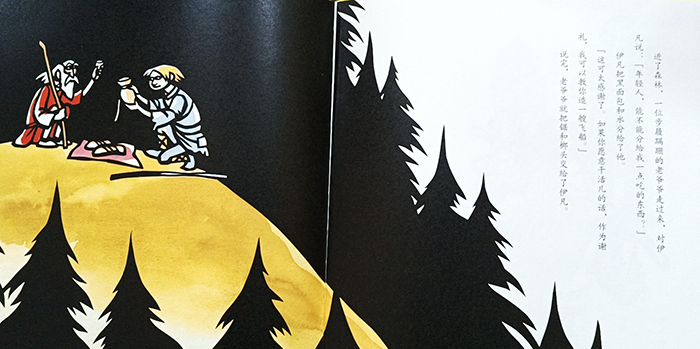 国王向全国发出了通告,要找一位坐飞船来城堡的人做公主的丈夫。伊万带上黑面包和水出发了。他遇见一位很老很老的老人要吃的喝的,伊万毫不犹豫地把黑面包和水给了老人。于是,在老人的指点下,伊万造了飞船,还带着路上遇到的人,完成了国王下达的各种无理命令,最终推翻了国王的统治。