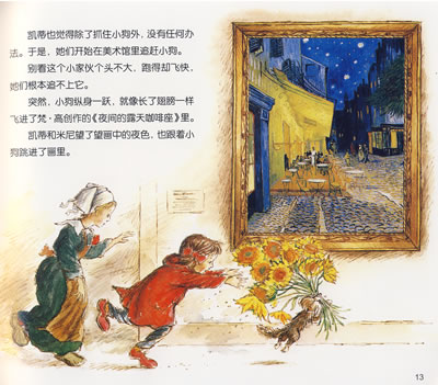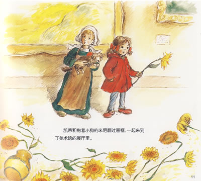 凯蒂试着去文森特·梵·高的画里取一些向日葵的种子,可是不小心把花瓶碰翻了,向日葵和花瓶一起掉出画框,弄得凯蒂手足无措。