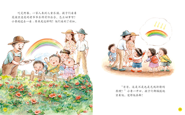 科普图书并非生硬地传达枯燥的知识,“小小科学家绘本”系列每一册的文字与图画中都蕴含着适合孩子的科学信息,从孩子们触手可及的事物讲起,如受热熔化的小糖人儿,被晒干的蔬果干,静电是怎样产生的……不是让孩子单纯地背诵科学定理,而是逐步培养孩子的科学兴趣和人文情怀。 读图阶段的孩子,习惯用图片理解世界,这个系列的插图不因美丽可爱而违背科学精神,而是以事物本来的面貌呈现,同时做到生动有趣,多姿多彩。每册图书分为两个部分:有趣的故事加插图包含科学信息;知识页点拨知识点,是对故事中的科学信息的进一步拓展。引导孩子积极参与,积极思考。本书通过有趣的故事介绍了折射现象。