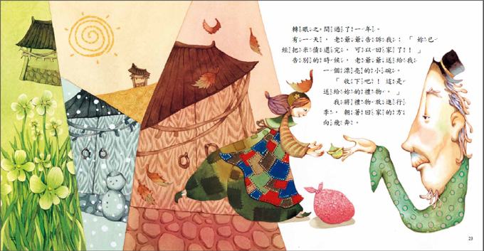 用口語說故事的口吻,散播溫暖純真的情感這是奶奶小時候的故事。奶奶經過山神樹前,發現了一碗香噴噴的白米飯。因為肚子實在餓得受不了,所以奶奶偷偷的把飯吃掉了。隔天,有個老爺爺來家裡討米債,奶奶該怎麼辦呢?一個想像與現實交替的動人故事。用奶奶講故事給孩子聽的敘述方式,讓人感受到溫暖純真的情感。
