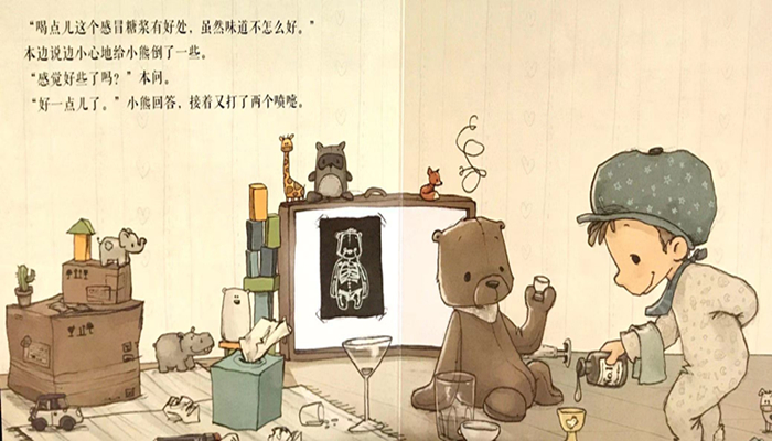 本系列是一套低幼卡板书,介绍了男孩本和他喜爱的玩具小熊之间的故事。在本的照料下,小熊仿佛也有了生命,可以和本对话、可以和他一起玩、可能会生病。他们俩一直互相帮助、互相爱护,用充满爱的陪伴温暖彼此。《小熊生病了》天哪,小熊生病了!流鼻涕,额头烫。好吧,本知道该怎么做:鼻喷雾剂,大量维生素和创可贴,当然,要想让小熊迅速康复,更重要的给它是很多很多的爱。