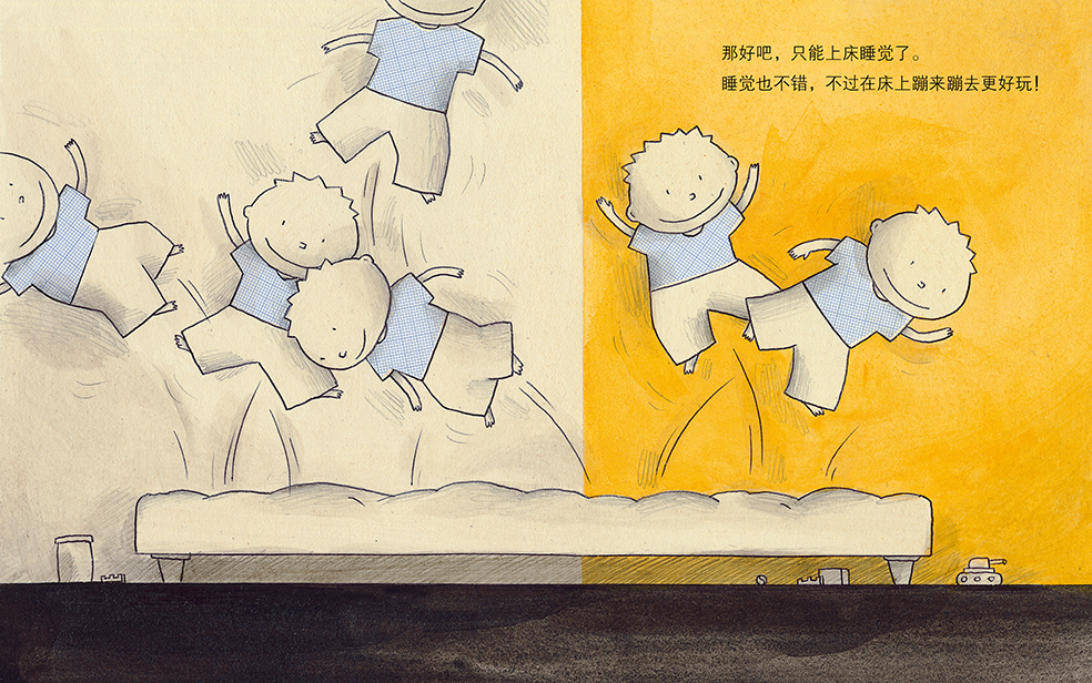 “亚瑟有点烦”系列由五个小故事组成:《亚瑟,喝汤!》《亚瑟,做作业!》《亚瑟,收拾房间!》《亚瑟,睡觉!》《亚瑟,你又在月球上!》。每个小故事的名字里都有一个惊叹号,透过文字,扑面而来的首先是家长的情绪。还没翻开书,只看名字,给我的第一感觉是,哦,《大卫,不可以!》。