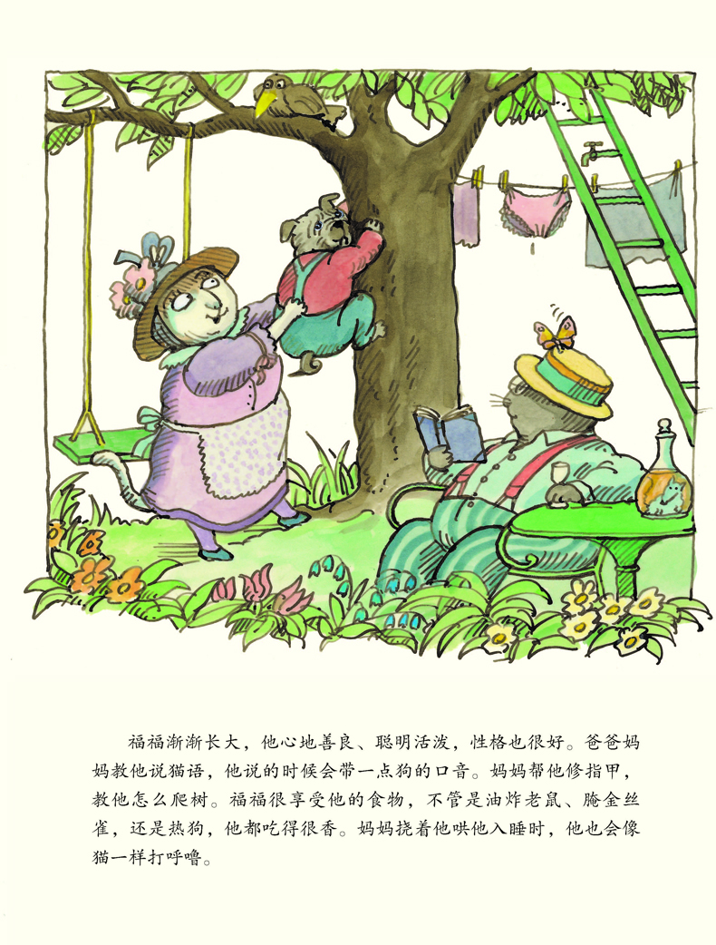 这只幸运的狗狗正是如此,因为有了父母爱意满满的陪伴,他找到了自己的成长方式:他学会了猫的语言,吃猫的食物,甚至睡觉时也跟猫一样打呼噜;他发明游戏自己跟自己玩;他成绩优异,是学校里出类拔萃的学生;他会拉小提琴,还加入了管弦乐队……