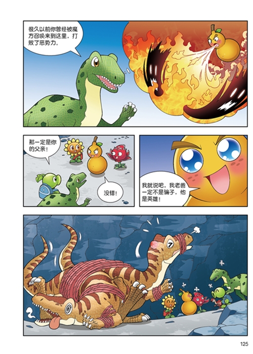 本书是《植物大战僵尸2·恐龙漫画》系列图书中的一册,以植物大战僵尸游戏中的角色和三叠纪的恐龙为主角,讲述了一个关于亲情的冒险故事。红针花从森林深处带回了一只被打乱的水晶魔方,豌豆射手把魔方还原后,奇妙的事情发生了。一只恐龙的影像从魔方中升起,向植物们求救。植物们根据线索提示,用魔方打开光之门,穿越到三叠纪,没想到却卷入了一场埃雷拉龙和腔骨龙的纷争。原来,腔骨龙一族得到了一种神奇的水晶,能把恐龙变小。野心勃勃的腔骨龙首领便利用这种水晶打败了埃雷拉龙一族,夺得统治权,统治了整个恐龙世界。无助的埃雷拉龙小王子不得不常年流亡在外。植物们为了帮助小王子救出父亲和族人,与腔骨龙一族斗智斗勇,最终成功打败腔骨龙,救出了埃雷拉龙,守护了正义与和平。